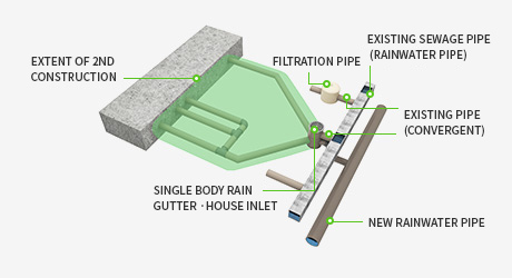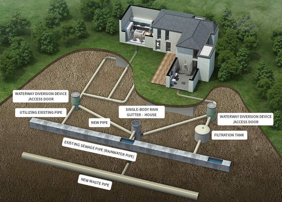 Allow the rainwater and sewage to be drained through the existing convergent pipe at the time of construction