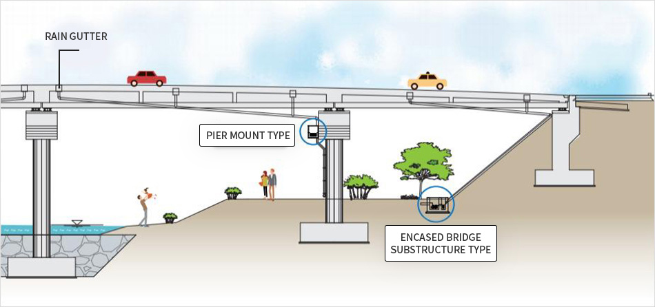 - - The initial rainwater that is collected in the bridge rainwater inlet flows into the treatment device