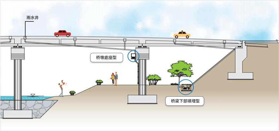 - 从桥梁雨水流入管收集的初期雨水流入处理装置