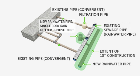 Allow the rainwater and sewage to be drained through the existing convergent pipe at the time of construction